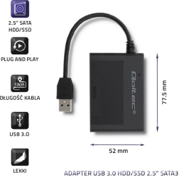 L'adaptateur USB 3.0 de la marque Qoltec est fabriqué avec un accent sur la qualité et la fonctionnalité. L'appareil est équipé d'un port SATA 3.0 placé à l'intérieur d'un boîtier protecteur qui stabilise le disque connecté et le protège des influences extérieures.