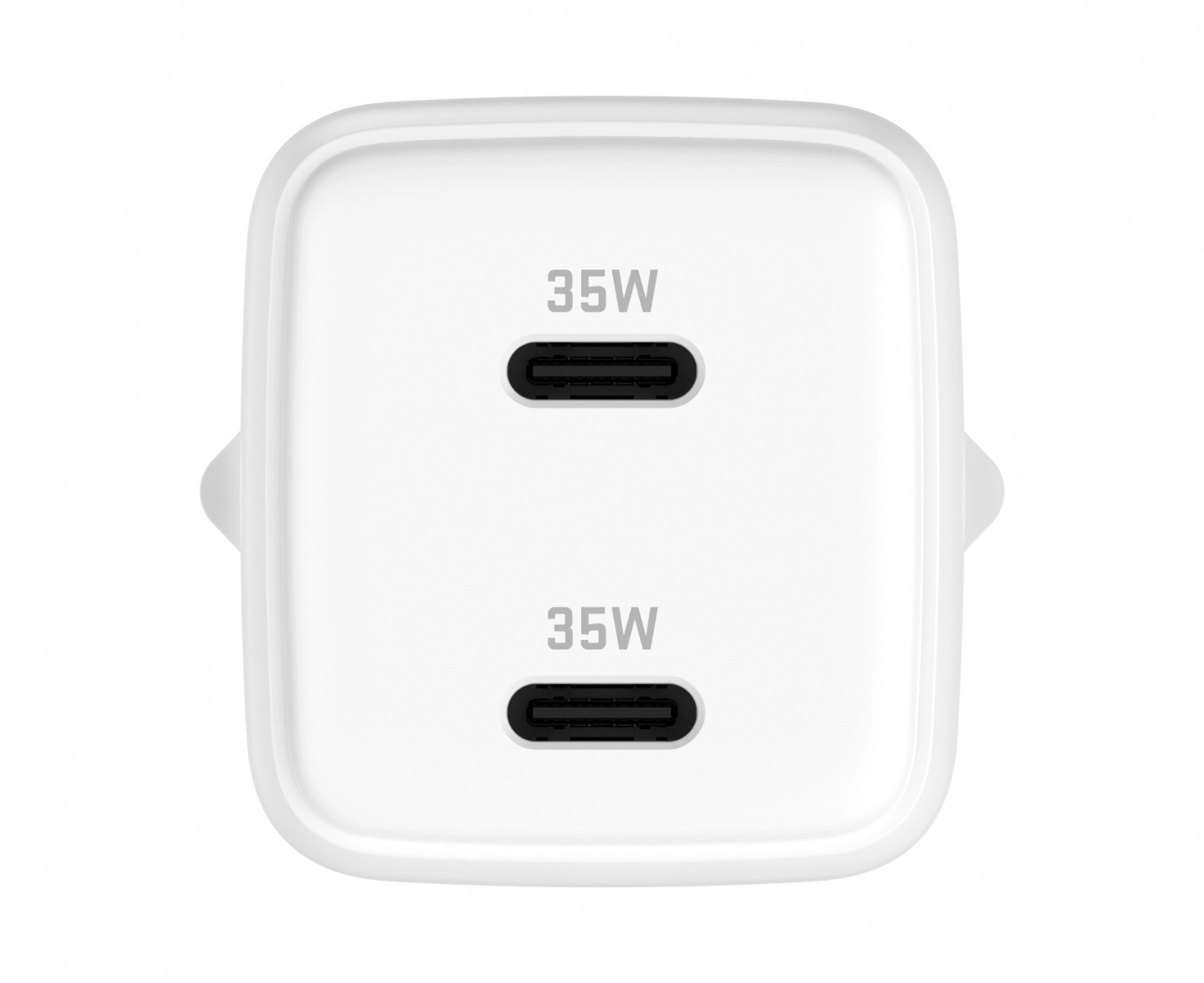 Chargeur VOLT GaN compact et puissant avec double sortie USB-C offrant une puissance maximale de 35 W. Il assure une charge rapide et sûre pour un large éventail d’appareils mobiles, y compris les téléphones, les tablettes et d’autres appareils électroniques.