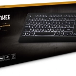 Le clavier est idéal pour les environnements de bureau et domestiques grâce à son mécanisme à membrane silencieux. Un design ergonomique assure une utilisation confortable.