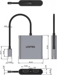 Travaillez confortablement sur trois écrans. Cet adaptateur permet de répartir le signal USB‑C vers deux appareils HDMI. Branchez l’adaptateur à votre ordinateur portable via USB‑C et connectez les moniteurs aux entrées HDMI. Réglez les options d’affichage et profitez des avantages du travail sur trois écrans, idéal pour la programmation, la conception ou les présentations.