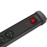 La multiprise est équipée d'une protection fusible rapide de 10 A avec une charge maximale de 2500 W et une réaction en 10 nanosecondes.