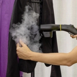 Étendez les possibilités de votre nettoyeur vapeur KÄRCHER SC avec des accessoires astucieux pour la mise en forme vapeur des vêtements. Grâce à un jet de vapeur dirigé, il lisse délicatement et efficacement les textiles, réduit le froissage et aide à éliminer les odeurs après une journée de port. Idéal pour des retouches rapides avant de sortir et pour les matières sensibles.