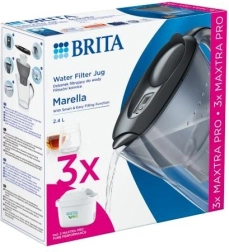 La carafe filtrante BRITA Marella d’une capacité de 2,4 l avec un pack de 3 filtres MAXTRA PRO Pure Performance garantit chaque jour une eau fraîche, savoureuse et filtrée en toute sécurité. Profitez d’un meilleur goût des boissons et des plats, de moins de calcaire dans la carafe et la cafetière, et d’un remplissage pratique à une main avec le rappel de remplacement du filtre BRITA Memo.