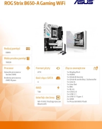 La carte mère ROG STRIX B650-A Gaming WiFi offre des performances élevées, une excellente résistance thermique et un équipement moderne pour les configurations avec processeurs AMD Ryzen 7000. Elle propose un PCIe 5.0 M.2, une mémoire DDR5 rapide et le Wi‑Fi 6E pour une connexion fulgurante – le tout dans un design STRIX noir‑argenté attrayant.