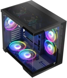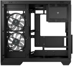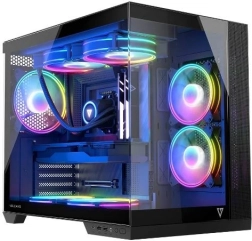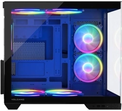 Volcano Panorama Apex ARGB Midi est conçu pour répondre aux besoins des assembleurs modernes. Grâce au panneau en verre trempé, vous mettez élégamment en valeur vos composants, tandis que la structure à double chambre assure la séparation de l’alimentation et une gestion propre des câbles.