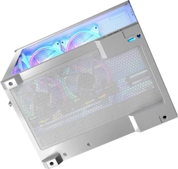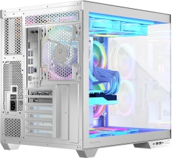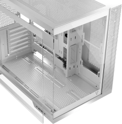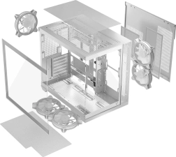 La conception à double compartiment avec bloc d’alimentation monté verticalement sépare la zone de service, améliorant la gestion des câbles et l’esthétique. Le boîtier est prêt pour les cartes mères ATX / mATX / ITX ainsi que pour les cartes mères à connecteurs inversés, offre de l’espace pour des cartes graphiques jusqu’à 400 mm et des refroidisseurs CPU jusqu’à 175 mm, et prend en charge le refroidissement liquide avec radiateurs 360 mm en haut et en bas.