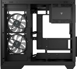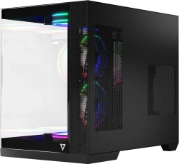 VOLCANO Panorama est un boîtier PC solidement construit offrant une vue panoramique sur vos composants – les panneaux avant et latéral en verre trempé mettent en avant la carte graphique, la RAM et le refroidisseur. La disposition à double chambre avec alimentation montée verticalement sépare la zone de service de l’espace principal, assurant une gestion des câbles impeccable et une présentation parfaite de la configuration. Grâce à la prise en charge des cartes mères à connecteurs inversés, vous êtes prêt pour les tendances modernes et les futures mises à niveau.