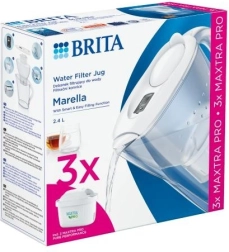 La carafe BRITA Marella d’une capacité de 2,4 l fournit environ 1,4 l d’eau filtrée par remplissage. Grâce à sa silhouette élancée, elle se glisse dans le balcon de porte du réfrigérateur, son couvercle à clapet permet un remplissage à une main, et l’indicateur BRITA Memo rappelle de changer la cartouche toutes les 4 semaines. La majorité des pièces passent au lave-vaisselle (sauf le couvercle avec électronique).