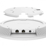 La sécurité est renforcée par WPA3, jusqu’à 24 SSID séparés, l’authentification via SMS/Voucher et la détection d’AP non autorisés. Son châssis circulaire élégant et fin (env. 220 × 32,5 mm) convient parfaitement au montage au plafond ou au mur et assure une dissipation thermique efficace.