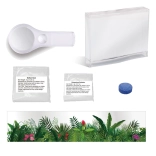 Aquarium, gel nutritif, loupe, autocollant avec des plantes, manuel