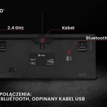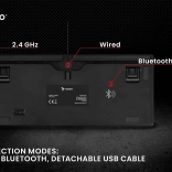 Trois options de connexion : sans fil 2,4 GHz, Bluetooth et USB filaire — un choix parfait pour ceux qui préfèrent réduire les câbles au minimum. Connexion rapide et stable.