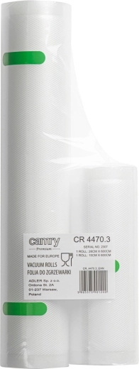Film pour appareils de mise sous vide Camry CR 4470, Adler AD 4484, MS 4492, pouvant également être utilisé dans d’autres appareils de dimensions similaires. Film pour la conservation sous vide des aliments, grâce auquel les produits conservent leur fraîcheur beaucoup plus longtemps. L’emballage étanche avec extraction de l’air permet un stockage prolongé des produits au réfrigérateur ou au congélateur. Ils peuvent être utilisés au four à micro-ondes et conviennent à la cuisson sous vide (Sous Vide). De plus, vous pouvez utiliser les films non seulement pour les aliments, mais aussi pour protéger de petits objets, comme des pièces de monnaie, contre l’humidité et la poussière. Les films sont idéaux pour un usage domestique comme professionnel.
