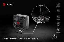 Le Savio Frost X2 offre un excellent refroidissement grâce à deux caloducs en cuivre de 6 mm en contact direct avec le processeur, transférant rapidement la chaleur vers le radiateur en aluminium. Les performances du système de refroidissement sont assurées par un ventilateur de 120 mm à vitesse réglable de 800 à 1800 tr/min, connecté via un connecteur 4 broches avec prise en charge PWM. Cette technologie adapte automatiquement la vitesse du ventilateur en fonction de la température, garantissant un fonctionnement silencieux et une efficacité énergétique.