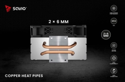 Le refroidisseur de processeur Savio Frost X2 est conçu pour le refroidissement efficace des processeurs modernes avec un TDP maximal de 125 W. Grâce à deux caloducs en cuivre et à un ventilateur de qualité, il maintient une température CPU optimale même sous forte charge.