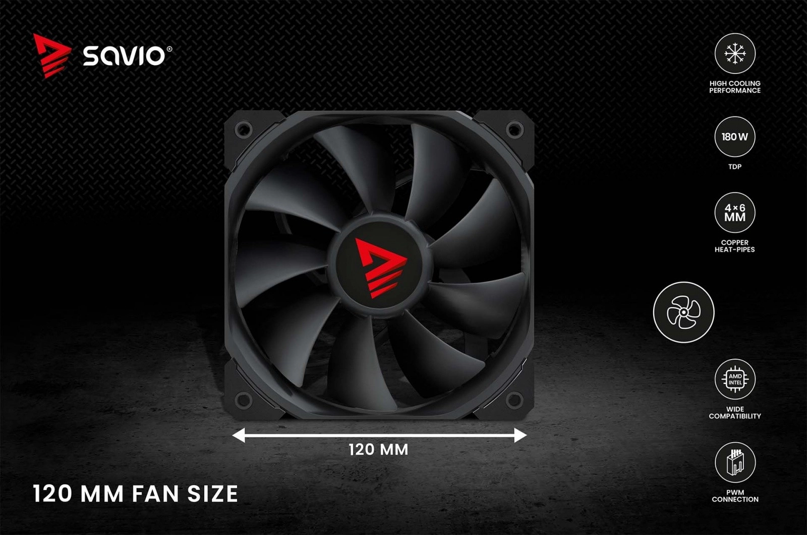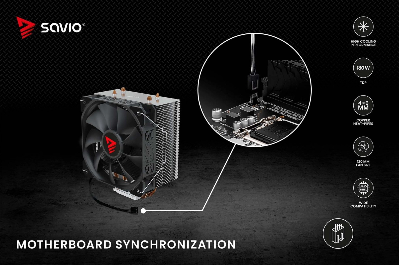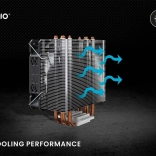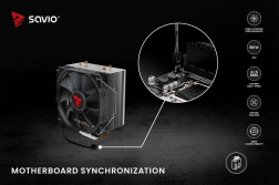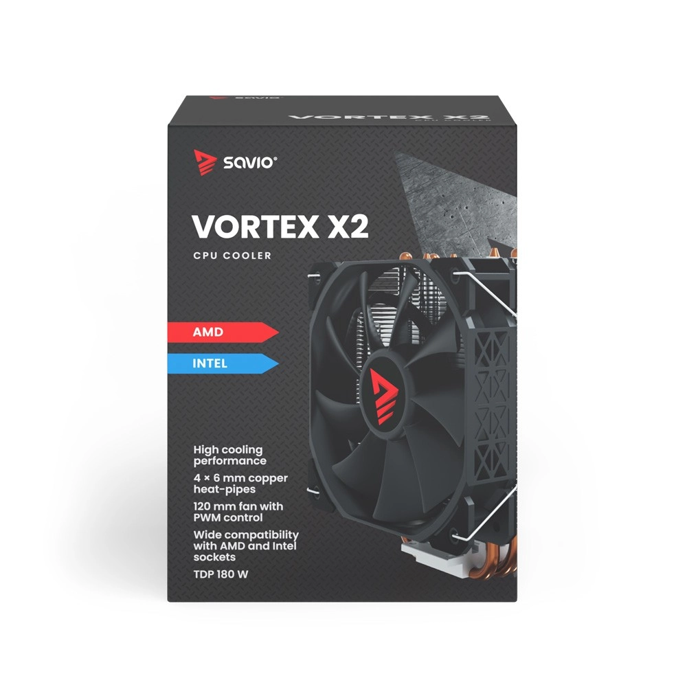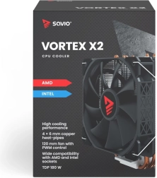 Le refroidisseur Savio Vortex X2 dispose de quatre caloducs en cuivre qui évacuent efficacement la chaleur de la surface du processeur vers le dissipateur en aluminium.