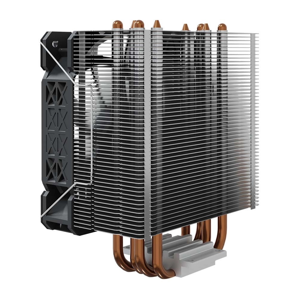 Il est équipé de quatre caloducs en cuivre qui transportent la chaleur du processeur vers le dissipateur en aluminium. Le ventilateur de 120 mm avec régulation PWM (800–1800 tr/min) assure un flux d’air optimal tout en maintenant un niveau sonore minimal, idéal pour un environnement silencieux.