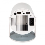 Le projecteur cylindrique en blanc avec un design élégant est doté d'une télécommande noire pour une utilisation confortable. Grâce à sa lentille de qualité, il est idéal pour la projection de diverses images et vidéos.