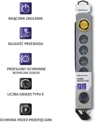 La barrette s’accordera parfaitement avec les appareils à proximité grâce à son design gris classique. Conçue selon les dernières tendances, elle allie élégance et simplicité d’utilisation. Gagnez de la place : la possibilité d’enrouler le câble autour de la barrette réduit l’excédent. De plus, une option de montage sur meuble est disponible, ce qui facilite l’organisation des câbles au sol.