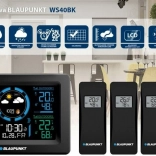 Gardez le contrôle du climat intérieur et extérieur. La WS40BK affiche simultanément les valeurs de jusqu’à quatre zones – un capteur intérieur intégré et trois capteurs sans fil avec leurs propres écrans LCD. Sur l’écran couleur clair, vous verrez la température et l’humidité actuelles, des flèches de tendance sur la dernière heure, une prévision graphique sur 12–24 heures basée sur les variations de pression, ainsi que les phases de la Lune.