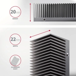 Maintenez votre SSD M.2 à une température optimale sans perte de performance. Le dissipateur en aluminium avec ailettes transversales et cadre métallique augmente la surface de dissipation et, grâce aux pads thermiques, refroidit efficacement les SSD simple et double face. Sa conception compacte avec une hauteur totale de 24 mm permet l’installation même dans des espaces restreints, par exemple dans des boîtiers avec faible hauteur au-dessus du slot.