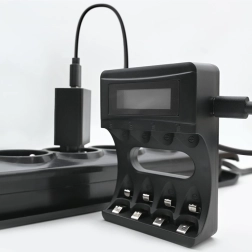 Conçu pour le confort et la fonctionnalité. Grâce à sa construction légère et à ses dimensions compactes, le chargeur pour batteries AA et AAA se transporte facilement, garantissant une source d’énergie fiable en déplacement, au travail et lors d’activités en plein air. Vous pourrez toujours recharger vos batteries, que ce soit via une powerbank ou une prise USB dans la voiture, assurant le fonctionnement ininterrompu de vos appareils électroniques. Son design pratique empêche non seulement la chute des batteries, mais permet aussi une insertion et un retrait aisés des accumulateurs.