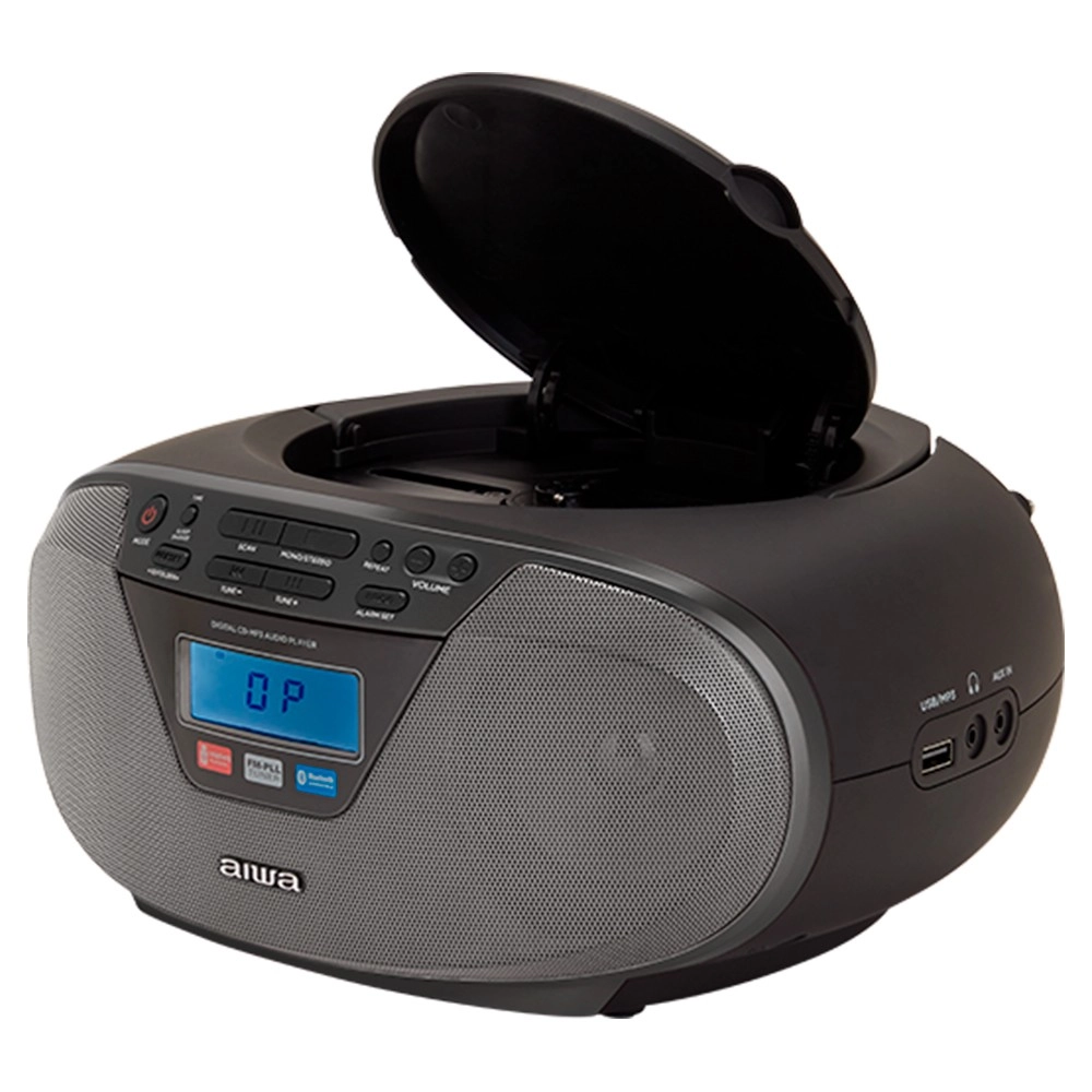 Le boombox CD/MP3 portable Aiwa est la solution idéale pour ceux qui veulent profiter de leur musique favorite partout. Grâce au Bluetooth v5.0 + EDR, vous pouvez diffuser votre musique sans fil jusqu’à 10 mètres. L’appareil dispose de haut-parleurs puissants de 2x3 W RMS, assurant un son de qualité avec des basses et des aigus remarquables.