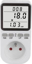 Ce compteur est doté de quatre grands boutons pour une utilisation facile et d'une alarme de surcharge qui vous avertit lorsque la charge dépasse la limite de sécurité de 3680W. Un écran clair permet une lecture simple des données telles que la quantité d'énergie consommée et son coût, aidant ainsi au suivi efficace et au contrôle de vos dépenses en électricité.