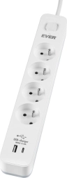 Protégez votre domicile et votre bureau avec la multiprise parafoudre EVER Protect dotée de quatre prises avec terre et de deux ports USB (USB‑A + USB‑C). Grâce au chargeur rapide intégré offrant jusqu’à 3,4 A, rechargez facilement smartphones, tablettes et montres connectées. Le fonctionnement sûr est assuré par une protection contre les surtensions, une sécurité enfants, un interrupteur bipolaire et une indication LED de l’état de la protection.