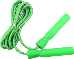 Légère et résistante, la corde à sauter en plastique de 2,5 m est un excellent accessoire pour l’entraînement quotidien comme pour s’amuser avec les enfants. Elle favorise la coordination, l’endurance et la combustion des calories. Disponible en variantes rouge, bleu et vert.