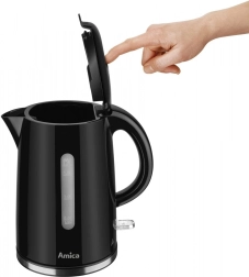 La bouilloire électrique moderne Amica d’une capacité de 1,7 litre est une aide précieuse dans votre cuisine. Elle se distingue par sa prise en main facile grâce à la base rotative à 360°, permettant de replacer la bouilloire dans n’importe quelle position.