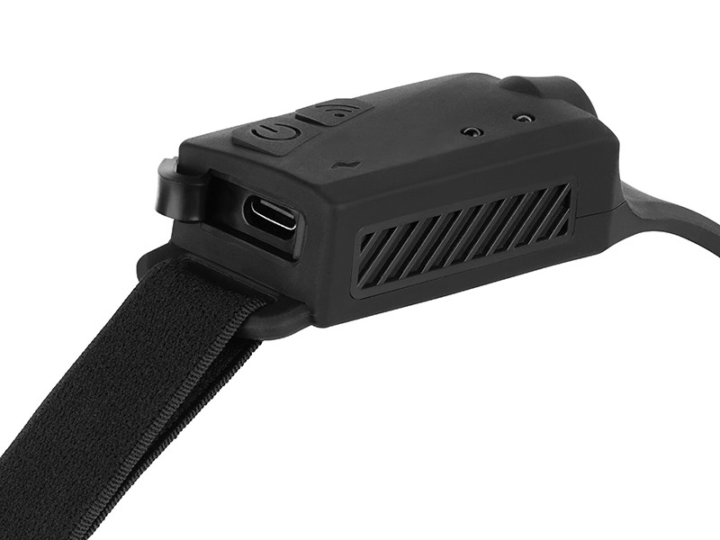 La frontale est équipée d’une batterie intégrée de 800 mAh. La recharge s’effectue via un port USB, ce qui permet de recharger même en déplacement.