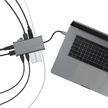 Grâce au mode alternatif DisplayPort et à la double sortie HDMI, connectez jusqu’à trois écrans avec une définition allant jusqu’à 3840×2160 à 60 Hz. Les ports rapides USB 3.0 gèrent des transferts jusqu’à 5 Gb/s, tandis que l’Ethernet Gigabit assure un réseau rapide et fiable. La Power Delivery jusqu’à 100 W maintient votre ordinateur portable et vos accessoires chargés sans nécessiter d’adaptateurs supplémentaires.