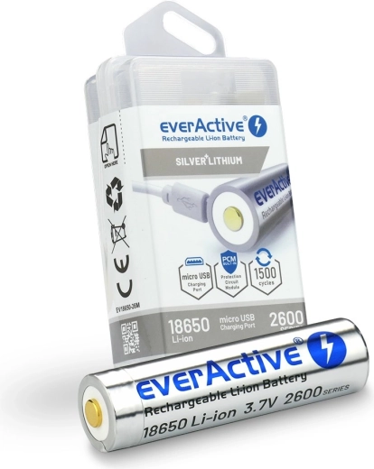 Cette batterie EVERACTIVE de la série Silver+Lithium offre un excellent équilibre entre performance et fiabilité. Grâce à sa précharge en usine (environ jusqu’à 30 %), elle est prête à l’emploi immédiatement, et grâce au micro USB intégré, vous la rechargez pratiquement partout – sans chargeur séparé.