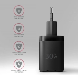 Ce chargeur léger et compact utilise la technologie moderne Si (Super Silicon) pour une meilleure efficacité, des dimensions réduites et une charge stable et sûre. L’unique port USB‑C fournit jusqu’à 30 W, ce qui permet d’alimenter smartphones, tablettes et certains ultrabooks en toute fiabilité.