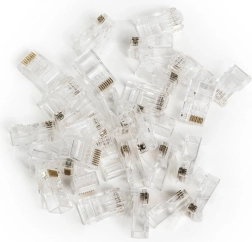 Les connecteurs RJ45 (8P8C) traversants Cat 6 offrent une terminaison fiable des câbles réseau avec une faible impédance de transition et un contact propre, ce qui se traduit par une grande capacité de débit et un taux d’erreur réduit. Le corps transparent facilite le contrôle de l’ordre des brins avant le sertissage et réduit le temps d’installation.