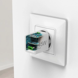 La prise en charge de Power Delivery et de Qualcomm Quick Charge assure une utilisation universelle. Le chargeur est protégé contre les surtensions et les courts-circuits grâce à un chipset intelligent.