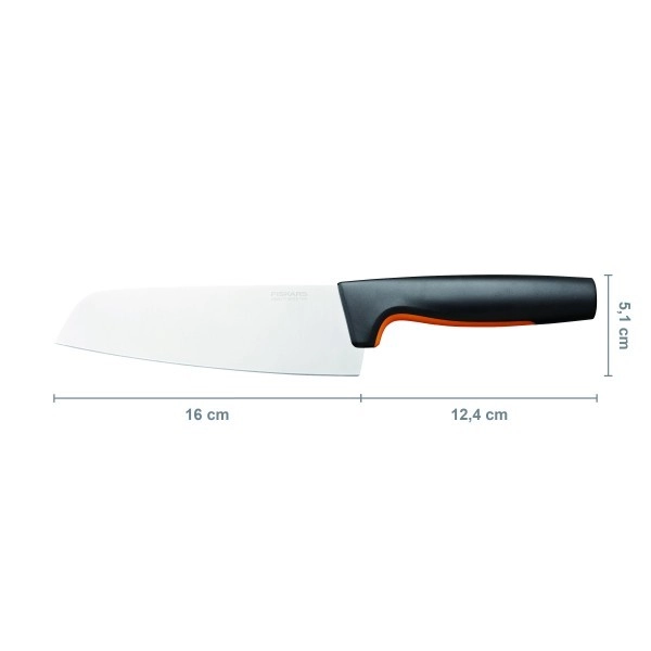 Découvrez un couteau de cuisine universel de style asiatique – un santoku avec lame de 16 cm de la gamme FISKARS Functional Form. Il offre une acier inoxydable japonais pour une longue tenue de coupe, une poignée ergonomique SoftGrip pour une prise en main sûre et un grand protège-doigts pour une découpe confortable et sécurisée. Idéal pour les légumes, la viande et les herbes, il est facile à utiliser, à nettoyer et peut être lavé au lave-vaisselle.