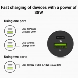 chargeur de voiture GREEN CELL PowerRide Nano38 38 W, USB‑C + USB‑A avec Power Delivery 3.0 et Ultra Charge