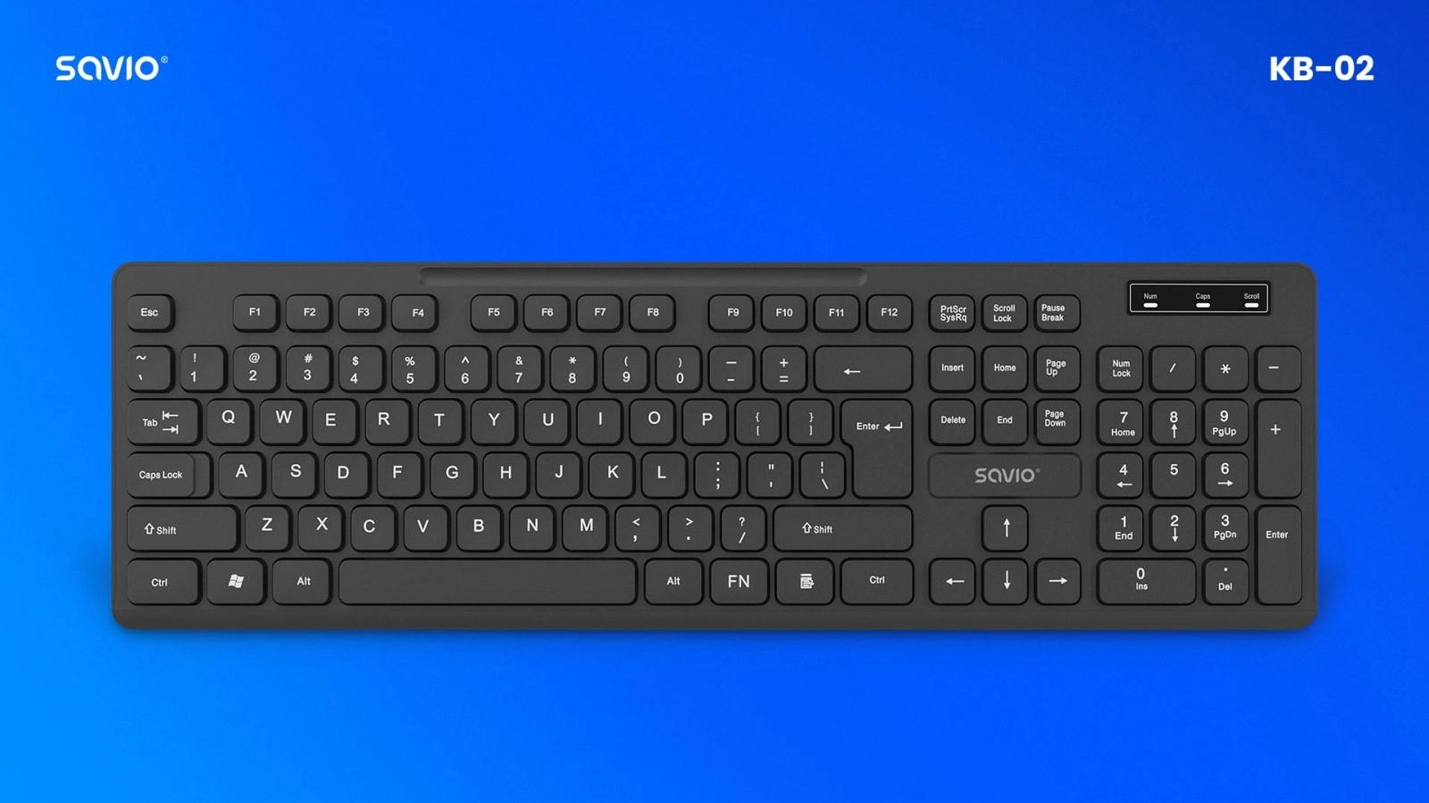 Le clavier sans fil élégant et fiable Savio KB-02 offre une connexion stable 2,4 GHz, une disposition US complète (104 touches) et un profil bas pour une saisie confortable à la maison comme au bureau. Grâce à une durée de vie des touches allant jusqu’à 8 millions de frappes et au Plug & Play facile, c’est un choix idéal pour le travail quotidien sans câbles.
