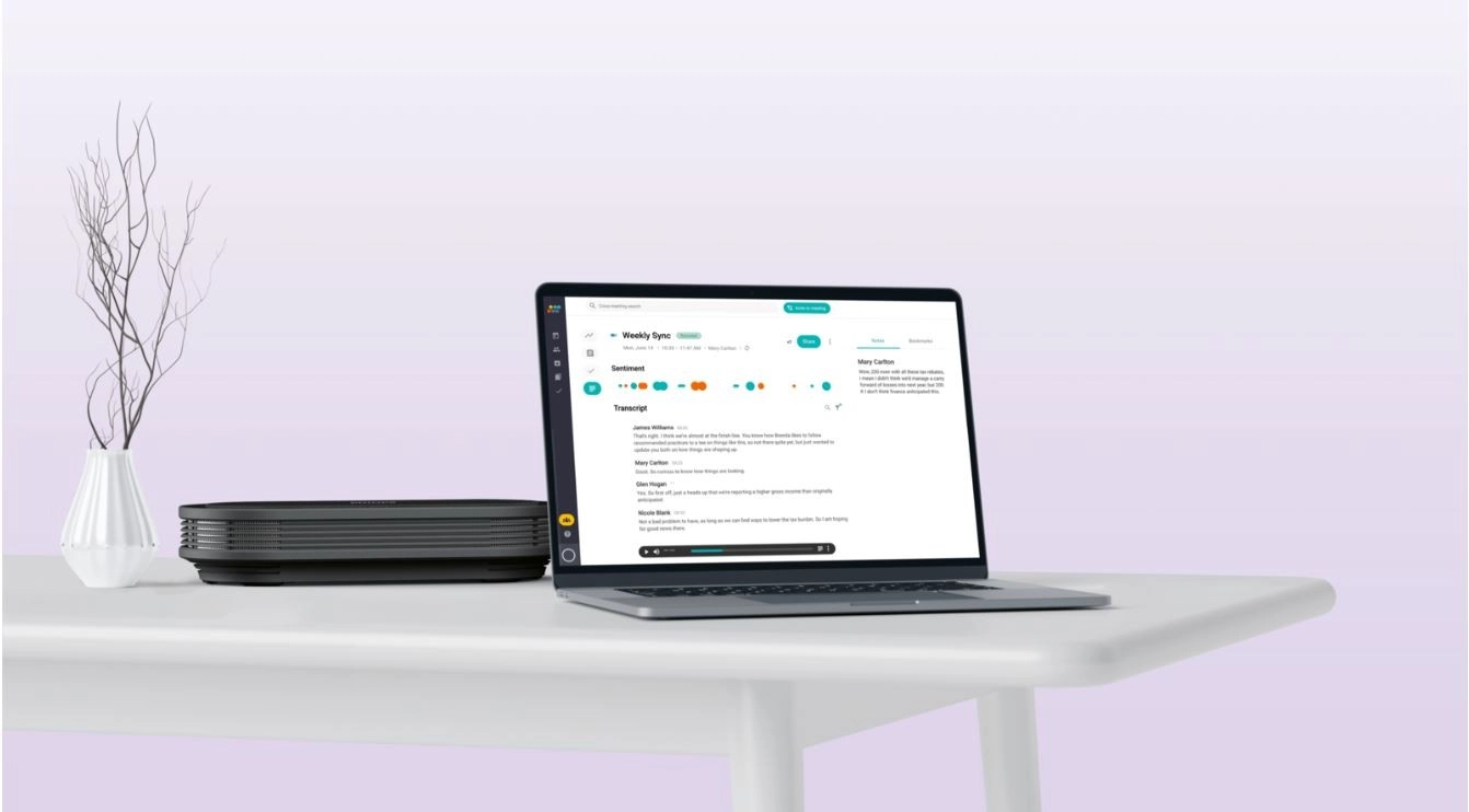PHILIPS SmartMeeting avec Sembly vous permet de vous concentrer sur la discussion pendant que l’assistant IA s’occupe des notes. Un filtrage avancé du bruit et une amplification intelligente de la voix assurent des échanges naturels et intelligibles. Sembly crée automatiquement des transcriptions, des résumés et met en avant les points d’action, afin que vous sachiez précisément, après chaque réunion, qui a dit quoi.