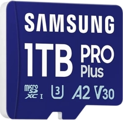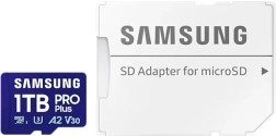 Étendez le stockage et les performances de votre appareil avec la carte SAMSUNG PRO Plus microSDXC 1 To et son adaptateur SD. Elle offre des vitesses jusqu’à 180/130 Mo/s (lecture/écriture), les classes U3, V30, A2 pour la vidéo 4K et les applications exigeantes, ainsi qu’une protection 6 fois renforcée contre l’eau, les températures extrêmes, les rayons X, les champs magnétiques, les chutes et l’usure. Idéale pour les smartphones Android, tablettes, caméras d’action, drones et même les consoles de jeux.
