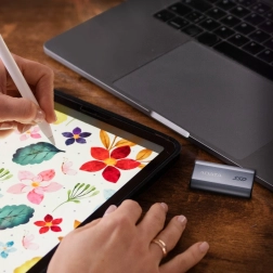 Connectez l’iPhone 15 Pro/Pro Max via USB‑C et enregistrez en ProRes directement sur le SSD SC750. Vous économisez de l’espace sur le téléphone et du temps en post‑production.