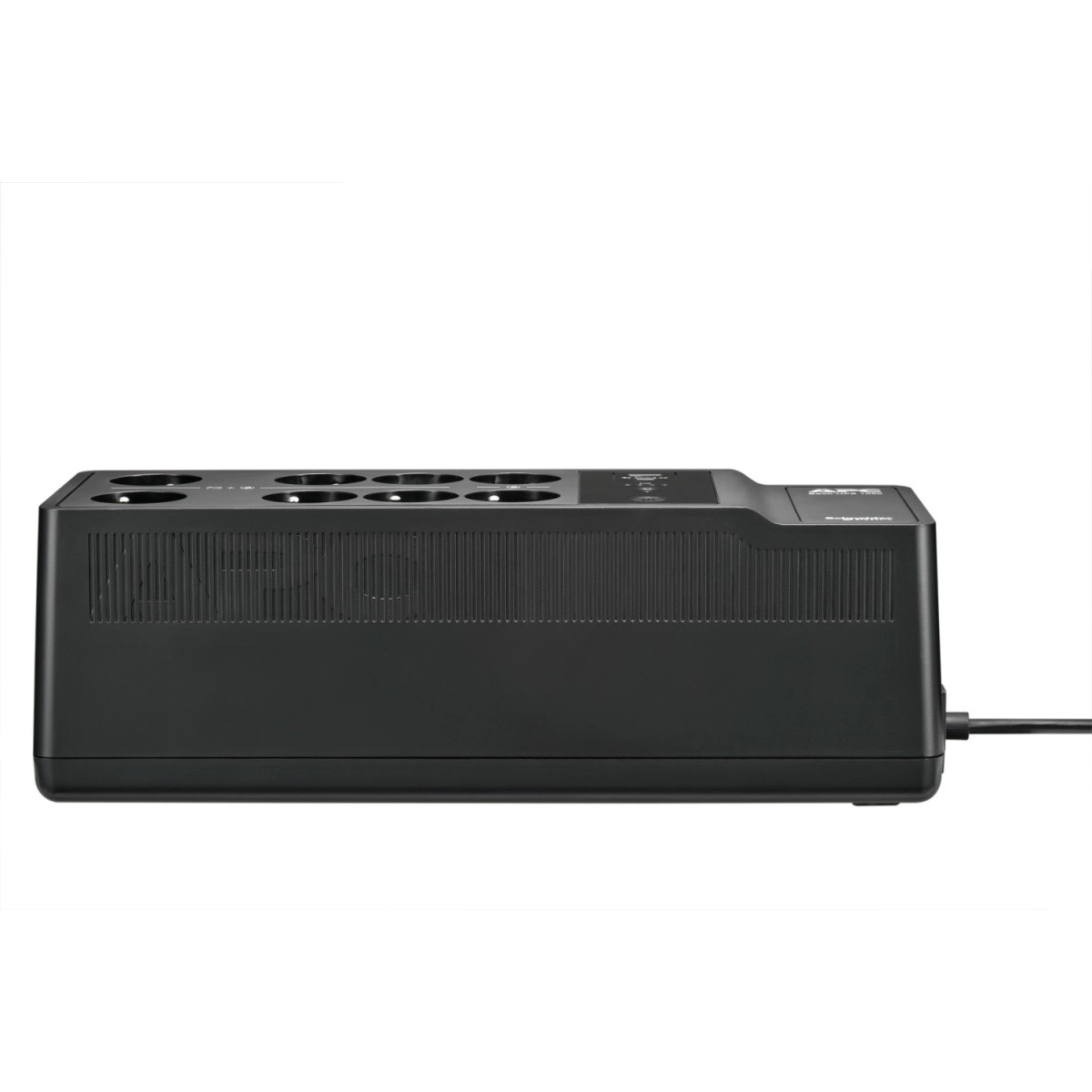 Huit prises de type E pour un branchement flexible : 6 prises avec secours sur batterie et protection contre les surtensions pour les appareils critiques, et 2 prises avec protection contre les surtensions pour les équipements moins essentiels.