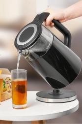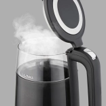 La bouilloire électrique Maestro est équipée d’un panneau de commande tactile, permettant une utilisation intuitive et confortable. Vous pouvez facilement régler la température de l’eau de 40 à 100 °C, avec un incrément de 5 °C par pression de bouton. Vous adaptez ainsi précisément la température aux exigences des différents types de thés ou d’autres boissons.