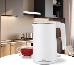 Lors de l'ébullition, la bouilloire reste froide au toucher grâce aux doubles parois, assurant ainsi la sécurité lors de son utilisation quotidienne.