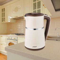 La combinaison du corps beige avec des accents marron rend cette bouilloire idéale pour toute cuisine moderne.