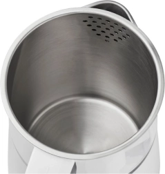 La bouilloire est équipée d'un couvercle amovible avec joint en silicone, facilitant le remplissage et le nettoyage. La fonction de mise hors tension automatique à ébullition et la mise hors tension automatique en cas de manque d'eau garantissent sécurité et économie d'énergie. La protection contre la surchauffe contribue à une utilisation sécurisée de l'appareil.