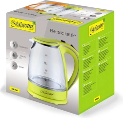 La bouilloire électrique Maestro avec une puissance de 2000 W allie élégance et fonctionnalité. Le corps en verre associé à une poignée en plastique durable assure une manipulation facile et une longue durée de vie. De plus, la bouilloire est dotée d'un filtre anti-calcaire garantissant une eau pure et une protection contre les dépôts.