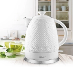 Élégante bouilloire électrique en céramique MAESTRO d'une capacité de 1,5 l et d'une puissance de 1500 W, elle apporte une ébullition rapide de l'eau et un design moderne à toute cuisine. Elle offre un socle rotatif 360°, un élément chauffant dissimulé, un interrupteur rétroéclairé et un arrêt automatique pour un confort et une sécurité maximaux.