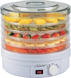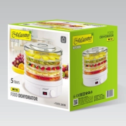 Le déshydrateur Maestro est équipé de 5 plateaux de 32 cm de diamètre, ce qui permet de sécher une grande quantité d’ingrédients en même temps.